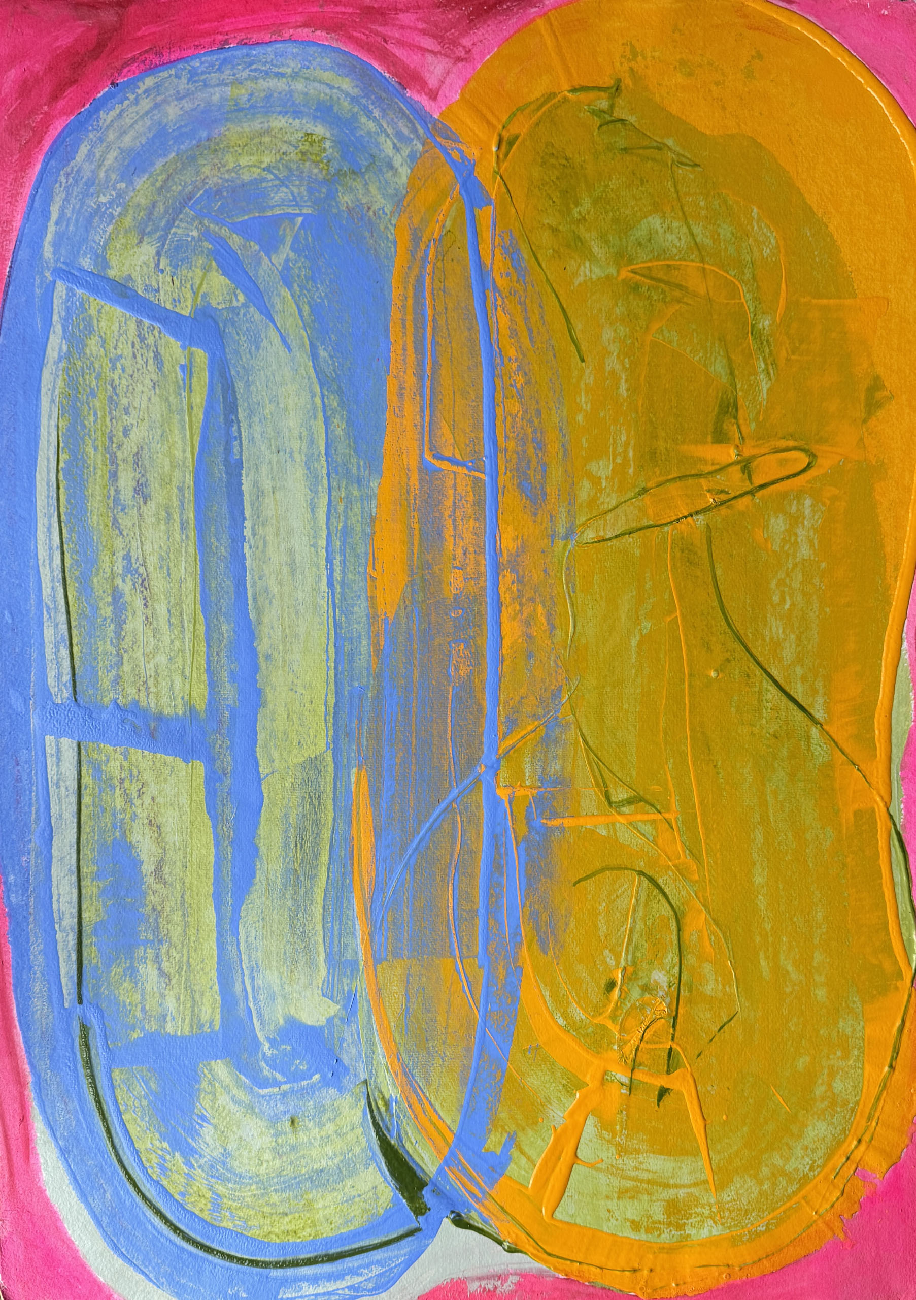 Attachment Blue and Yellow,acrylic on paper,22”x30”,2025